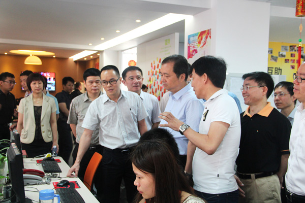 5月28日上午,泉州市市長鄭新聰、泉州市經(jīng)貿(mào)委主任黃國富等一行領導蒞臨福建省訊網(wǎng)網(wǎng)絡科技有限公司進行實地參觀考察,并就電子商務如何助力傳統(tǒng)鞋服產(chǎn)業(yè)發(fā)展提出指導意見。