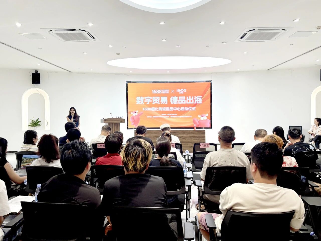 9月4日,“數字貿易 德品出海——1688德化陶瓷選品中心啟動儀式”在德化縣中國陶瓷電商物流園·愛陶瓷全球陶瓷選品中心成功舉辦。德化縣人民政府副縣長鄭榮尊,泉州交發置業集團黨委委員、副總經理陳俊毅,1688數字供應鏈選品中心負責人葉柳明,以及陶瓷企業、電商企業、媒體等各界代表齊聚現場,共同見證這一重要時刻。