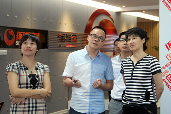 2013年7月17日,福建省外經貿廳副廳長鐘木達、信息化處處長林謀平等領導一行蒞臨訊網網絡進行實地考察,訊網網絡董事長王冬竹、總經理林文佳進行了全程接待,并就企業的電子商務應用和運營情況、外貿B2C的發展趨勢向外貿B2C調研組一行做了詳細的匯報。